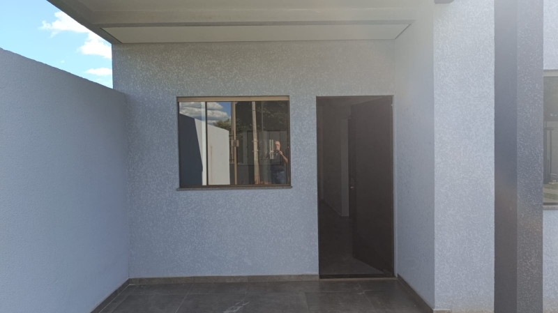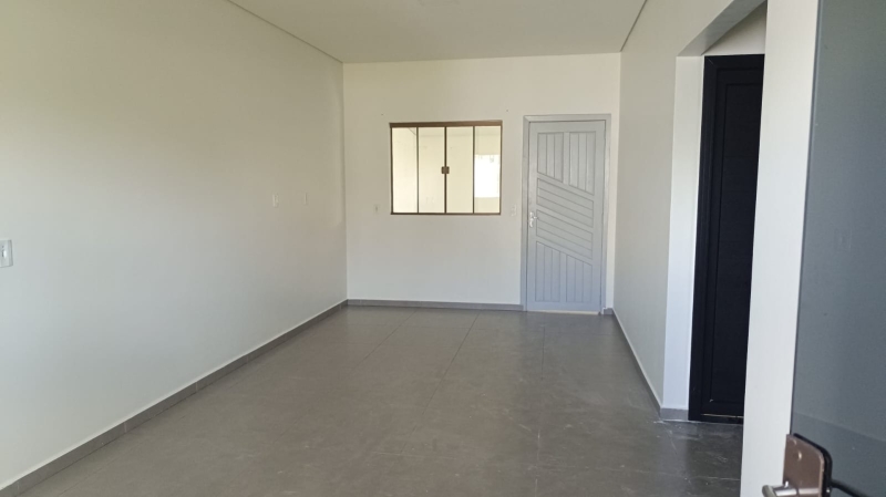 Casa dois dormitórios, sala/cozinha, banheiro social, garagem, lavanderia.
